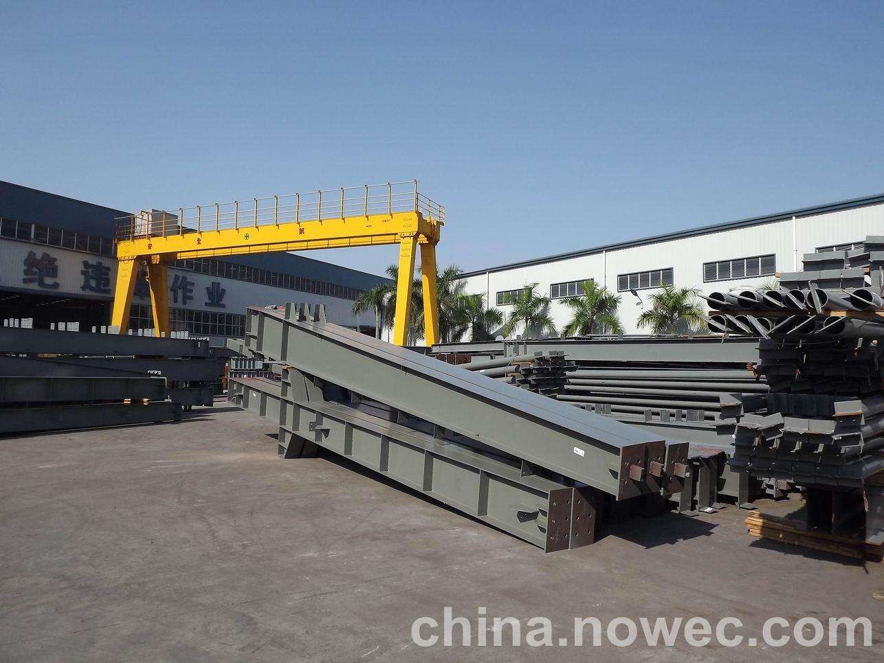 条状单元一般沿长跨方向分割,其宽度约为1~3个网格,其长度为l2或l2/2(l2为短跨跨距)。块状单元一般沿哈尔滨网架平面纵横向分割成矩形或正方形单元。每个单元的重量以现有起重机能胜任为准。条(块)与条(块)之间可以直接拼装,也可空一网格在高空拼装。由于条(块)状单元是在地面拼装,因而高空作业量较高空散装法大为减少,拼装支架也减少很多,又能充分利用现有起重设备,故较经济。这种安装方法适用于分割后网架的钢度和受力状况改变较小的各类中小型网架,如两向正交正放四角锥、正放抽空四角锥等网架。