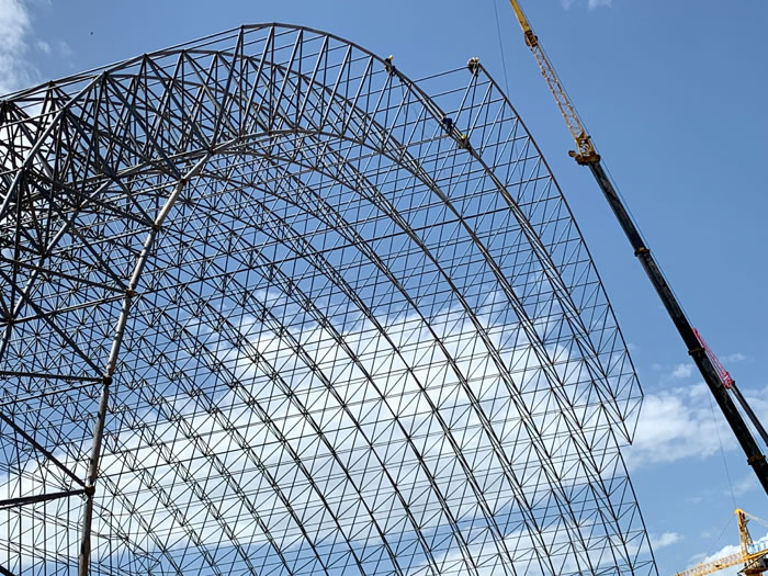 (2)网架加工前应对现场尺寸进行复测,确认无误后方可进行加工、安装;网架制作、运输、安装应遵守《空间网格结构技术规程》JGJ7-2010、《钢网架哈尔滨螺栓球节点》JG/T 10-2009、《钢网架哈尔滨螺栓球节点用高强度螺栓》 GB/T 16939-2016、《钢结构哈尔滨工程哈尔滨施工规范》 GB50755-2012、《钢结构哈尔滨工程施工质量验收标准》 GB50205-2020。
